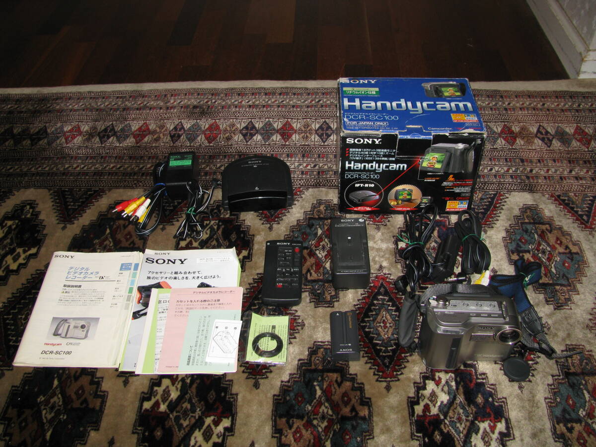 > SONY MiniDVデジタルビデオカメラ ハンディカム DCR-SC100 アクセサリーキット、コードレスレシーバー付 中古美品