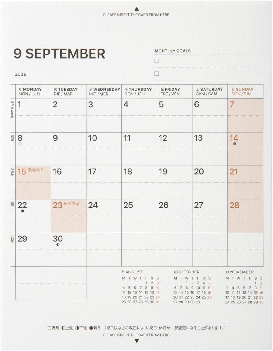 - ラコニック 手帳 フィールドパッド リフィル 2026年 A6 マンスリー LUB-RS02 (2025年9月始まり)