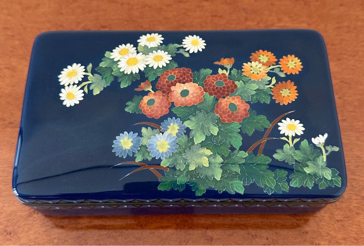- 特選品 純銀覆輪です!【 安藤七宝造 】有線太形紫紺釉菊文 銀座 安藤七宝店 GINZA ANDO SHIPPO 小箱