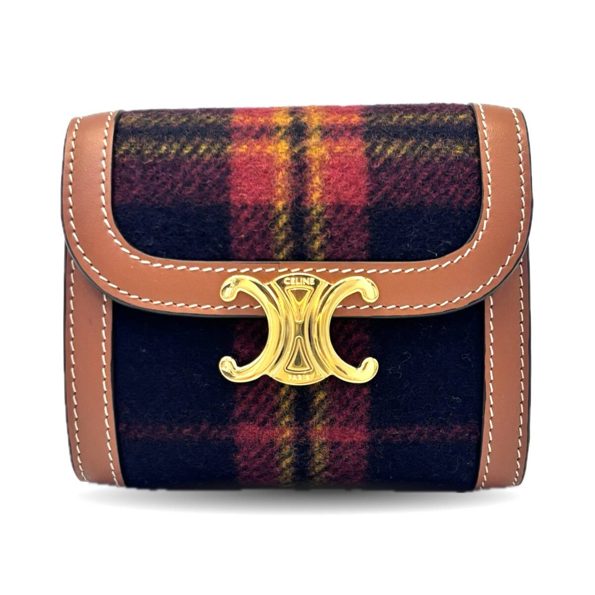 > セリーヌ スモールフラップウォレット トリオンフ タータンチェック レディス 2つ折り財布 レッド 10D783DPV CELINE Sランク 中古