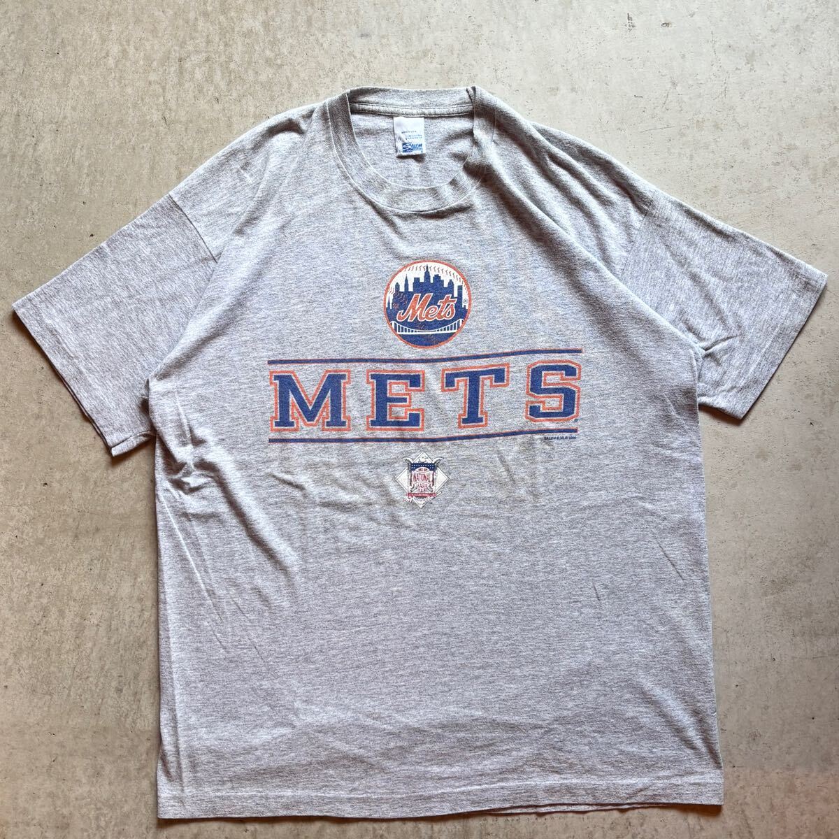 - 【USA製】90s SALEM セーラム 半袖 Tシャツ Tee クルーネック 灰/Gary メンズ XL ロゴ プリント ニューヨーク・メッツ アメリカ製 vintage