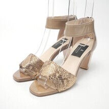> ●『LANVIN COLLECTION ランバン コレクション パイソン型押し レザー アンクルストラップ サンダル 靴 サイズ22 ライトブラウン系