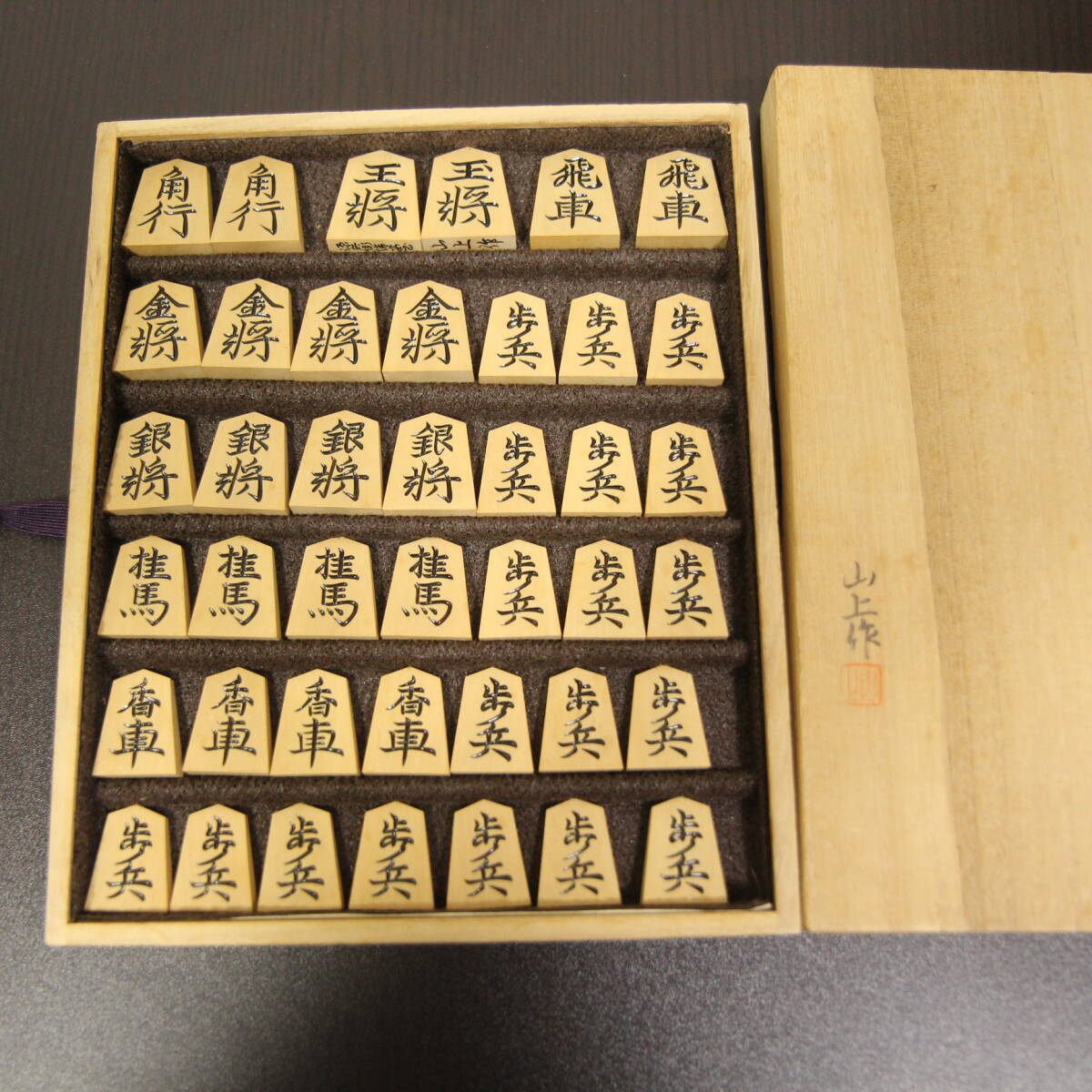 - 【源兵衛清安書】黄楊 山上作 彫駒 将棋駒 平箱 銘入り余り歩あり 41枚 つげ ツゲ 美品 天童特産 昇級祝い 昇段祝い 本格 巻菱湖 250705