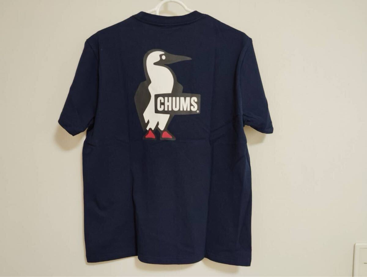 - 新品チャムスCHUMS 半袖TシャツMサイズBooby Logoブービーロゴ半袖カットソーメンズバックプリントネイビー