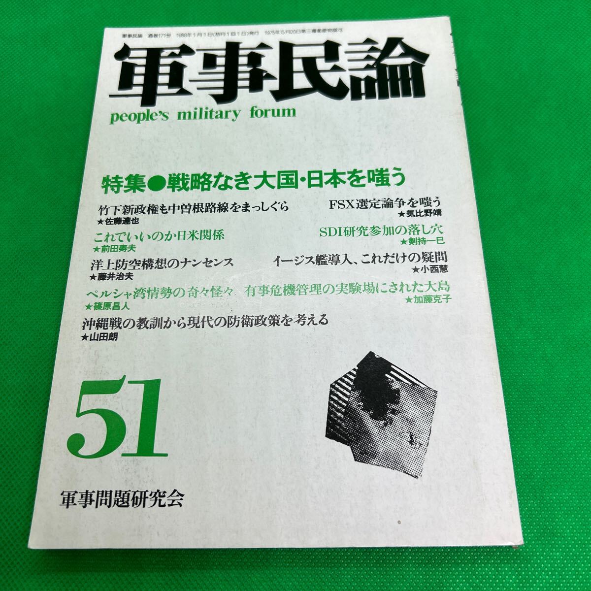 > 軍事民論51/戦略なき大国・日本を嗤う/1988年1月発行/軍事問題研究会/ペルシャ湾情勢/有事危機管理/I250703-8*58