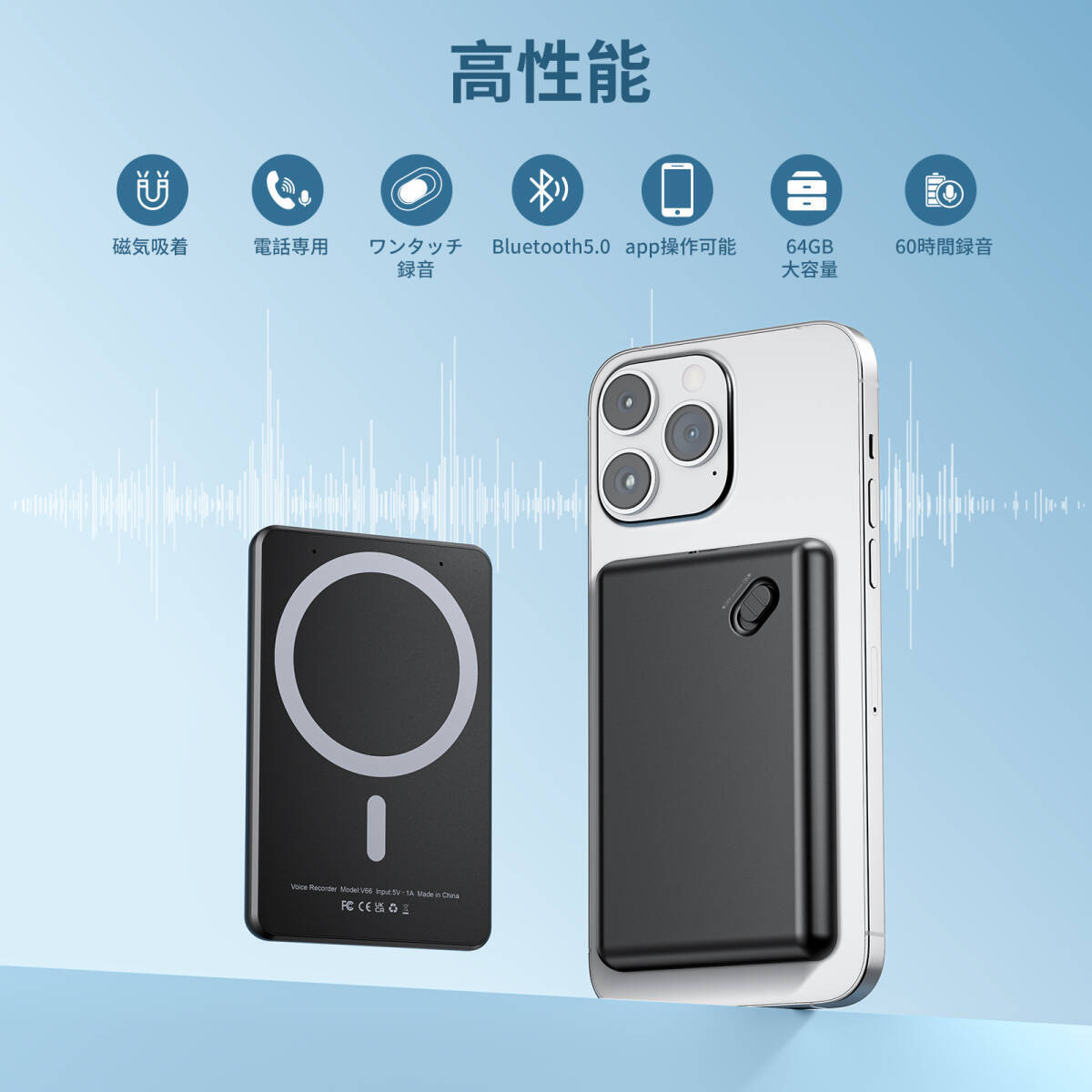 - 磁気吸着 ボイスレコーダー 64GB内蔵 60時間連続使用可能 録音 ワンボタン録音 レコーダー 通話録音 電話録音 icレコーダー