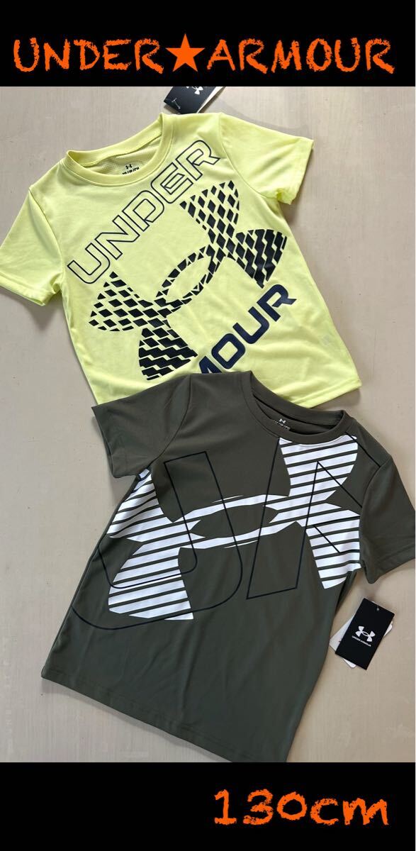 > 新品タグ付 130㎝アンダーアーマーUNDERARMOUR Tシャツ2枚組 イエロー×カーキ