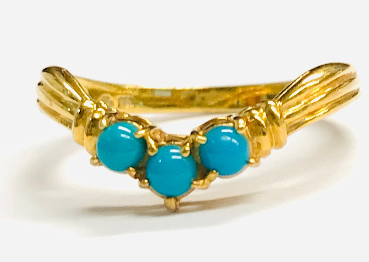 - qoj.ZBV15 K18 ゴールド 天然トルコ石 3Pリング 15号 ソーティング付き