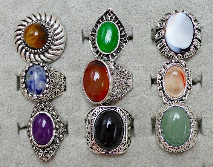 - Qa10-2[22] 天然石指輪おまとめて9点セット★瑪瑙 メノウ オニキス 虎目石 クォーツ アゲート レディースファッションリング TM-250621B3