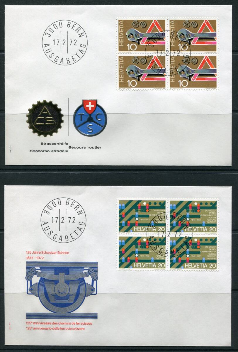 - スイス 1972年 鉄道 通信 植物 ③ 4種完 田型 FDC 初日カバー z8435
