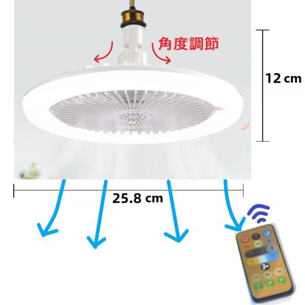 - 角度調節付LEDライトファン扇風機,3スピード,E26/E27口金電球ソケット取付用ライト,リモコン付き,寝室リビングルーム用 天井照明器具★鄭5
