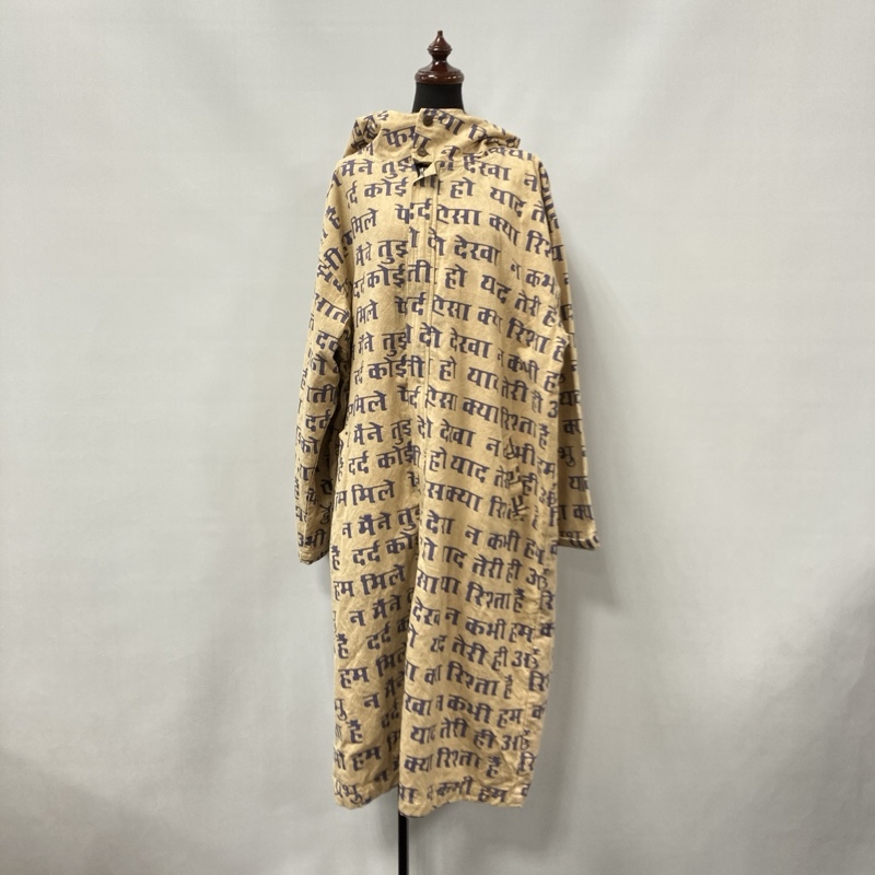 > ●yul/ユル/ネパール語プリント/アシッドウォッシュコットンフードコート/テキストプリント/チャイハネ/アミナコレクション/エスニック
