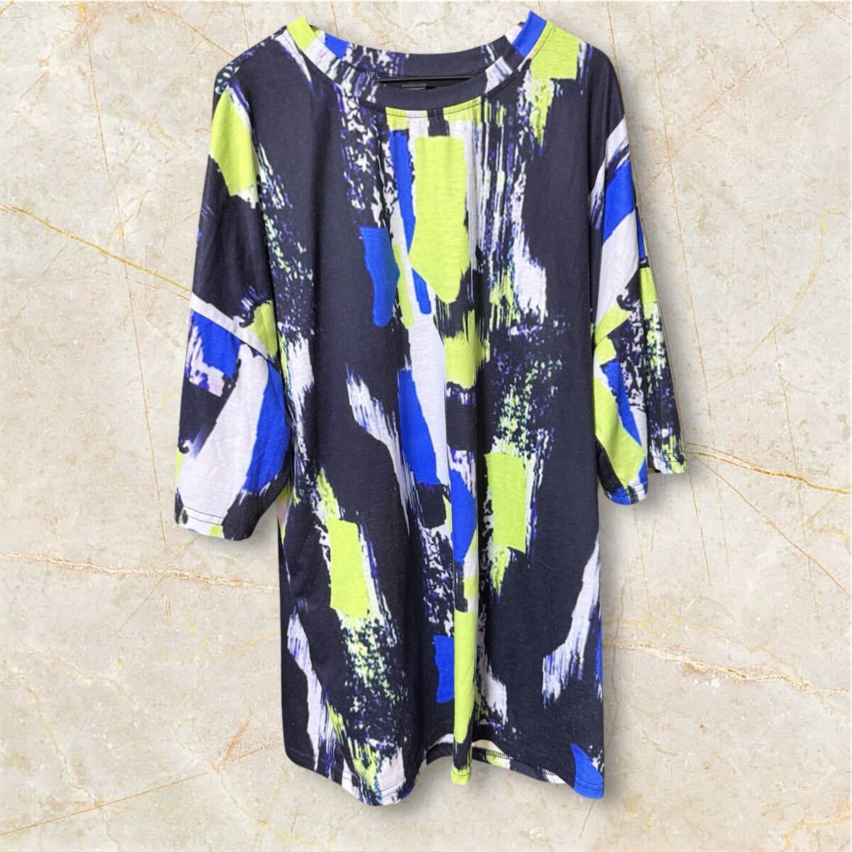 - 【SHEIN】3/4袖 抽象プリント オーバーサイズTシャツ
