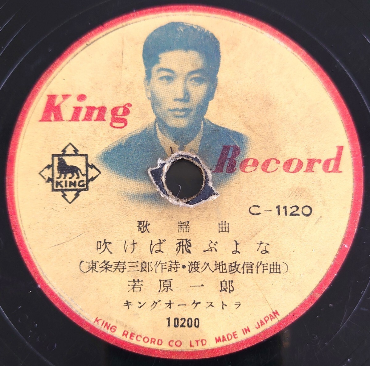 - 【SP盤レコード/薄ヒビ】KING RECORD C-1120歌謡曲/吹けば飛ぶよな 若原一郎/放浪日記 三条町子