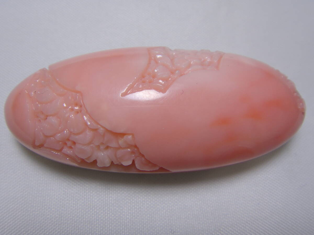 - 珊瑚 サンゴ さんご コーラル 繊細彫刻 お花彫刻 帯留め アンティーク レトロ ヴィンテージ Y738