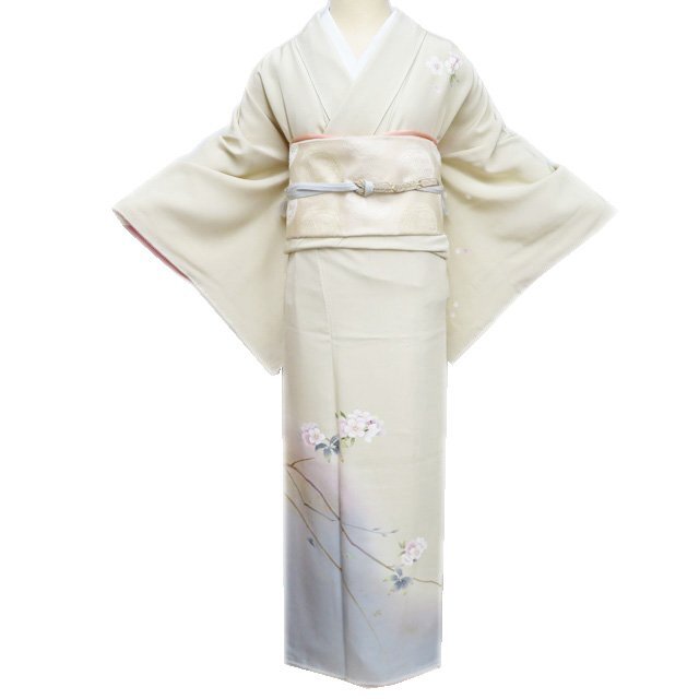 > 訪問着 着物 中古 正絹 袷 伝統工芸士 吉岡肇 落款 花の図 桜 暈し 蒸栗色 多色 金 身丈158.5cm 裄67.5cm M きもの北條 A1231-5