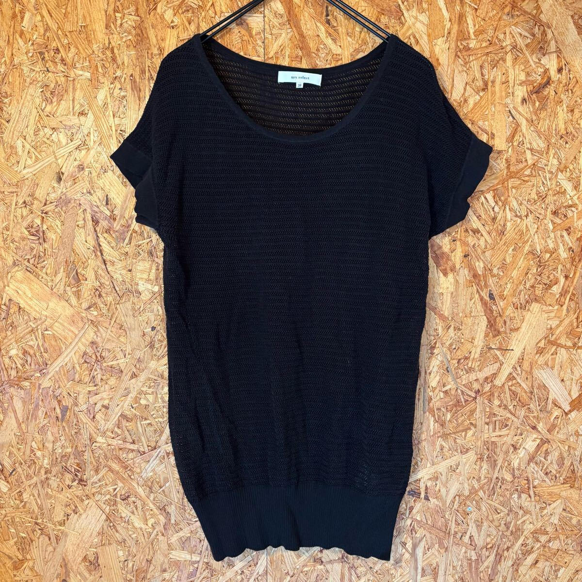 - 美品 m’s select カットソー ニット 半袖 セーター トップス 無地 ブラック 透け感 ロングカットソー 4684