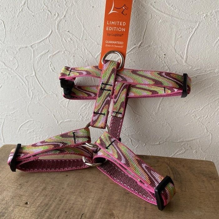 - ローマンハーネス・Sサイズ 18mm幅ピンクウェーブ柄 30-50cm LUPINEルパイン アメリカ製 軽量 丈夫 中型犬 Pink Wave