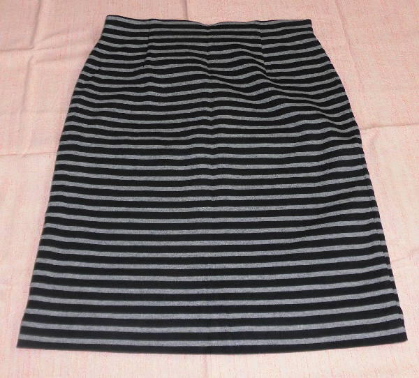 - 中古 Lugnoncureの台形スカート M 黒グレーのボーダー カットソー生地