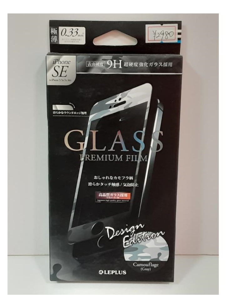 - C3【新長031208-102(2)】新品 iPhone SE/5/5S/5C 9H超硬度強化ガラスフィルム カモフラ柄 指紋防止 気泡防止 日本メーカー製 グレー