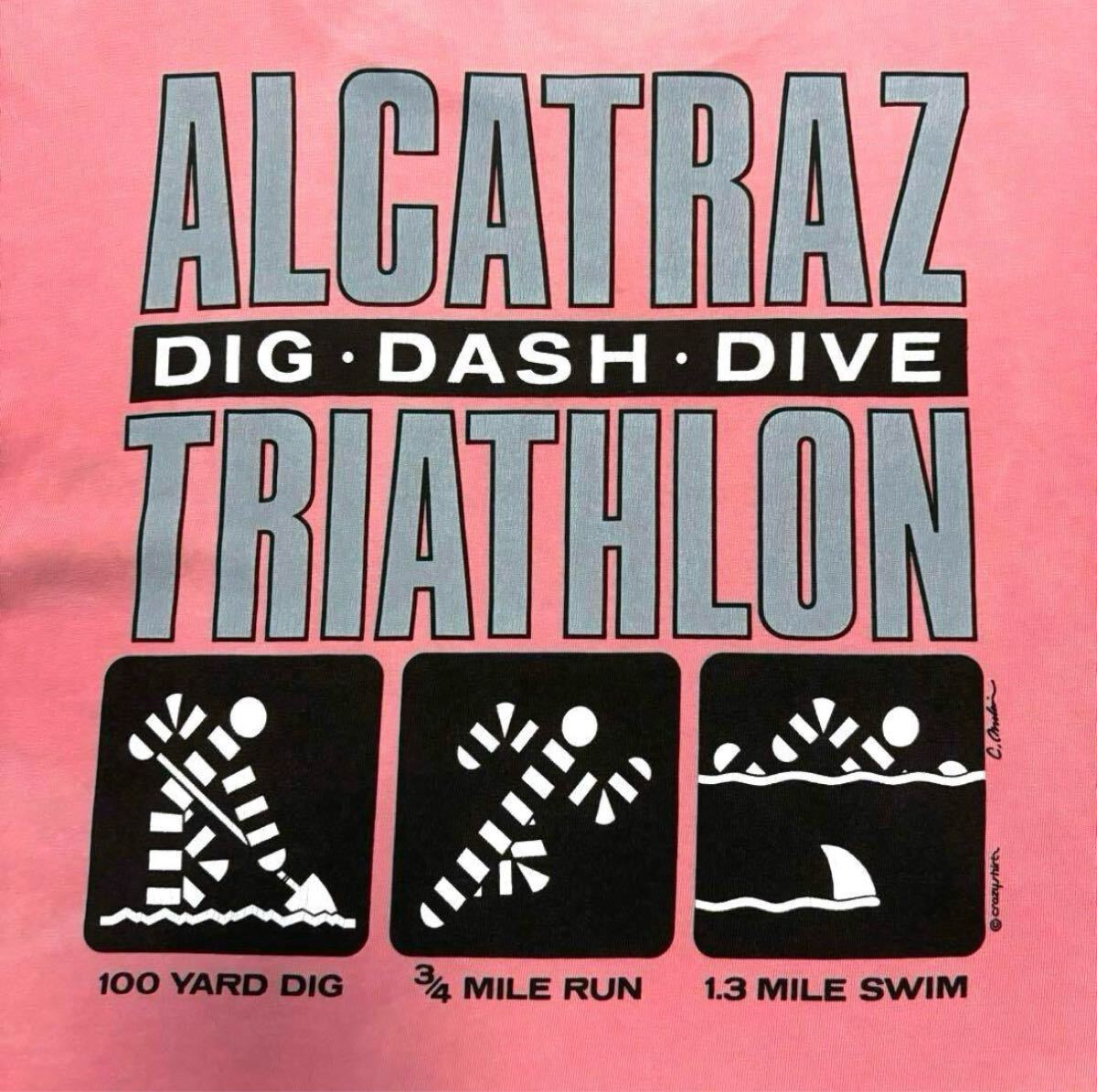 > L 雰囲気系 ボロ 90s USA製 クレイジーシャツ アルカトラズ トライアスロン Tシャツ ビンテージ アメリカ 古着 ゆるだぼ サンフランシスコ