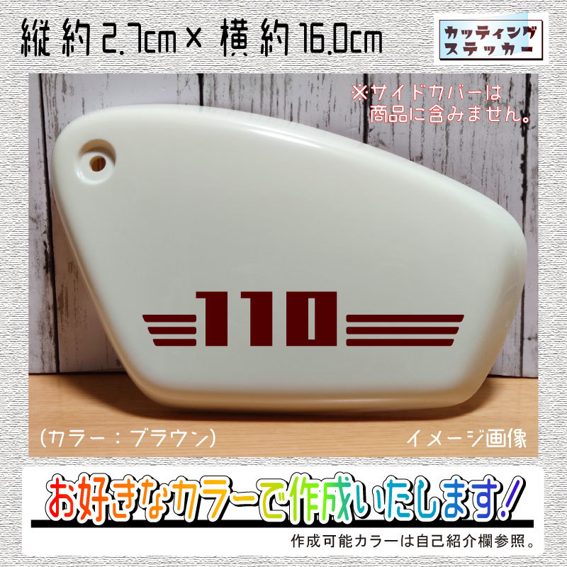 > サイドカバー用⑪110ステッカー2枚組 文字絵柄だけ残るカッティングステッカー・スーパーカブ・クロス・SUPERCUB・CROSS・排気量