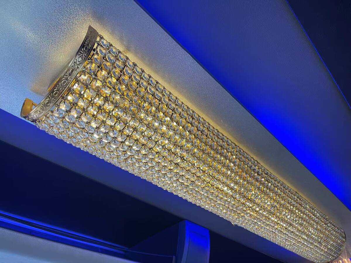 > G6039N 観光バス サロンバス シャンデリア フルゴールドメッキ クリスタルビーズ デコトラ レトロ 天井付け 壁掛 幅約140cm