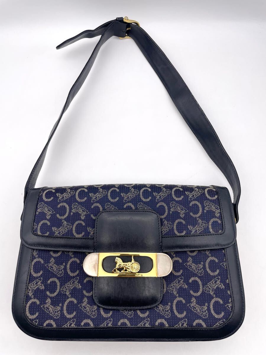 - CELINE オールドセリーヌ マカダム レザー×キャンバス ショルダーバッグ ネイビー系