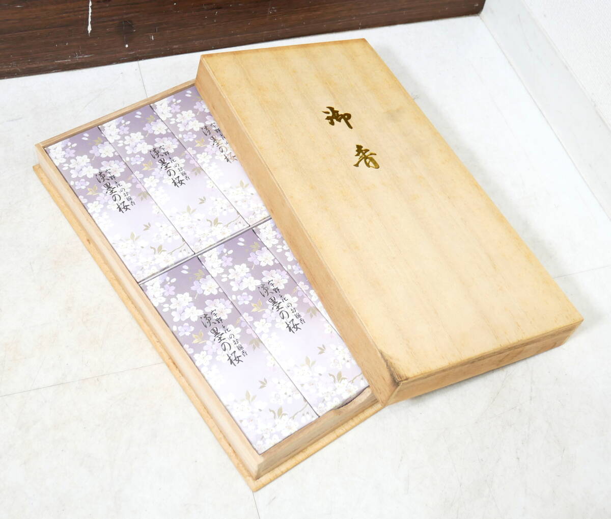 - ▲(R707-H71) 未使用品 日本香堂 薄墨の桜 宇野千代のお線香 短寸 6把セット けむり極少 お供え 供物 仏具 桐箱付き