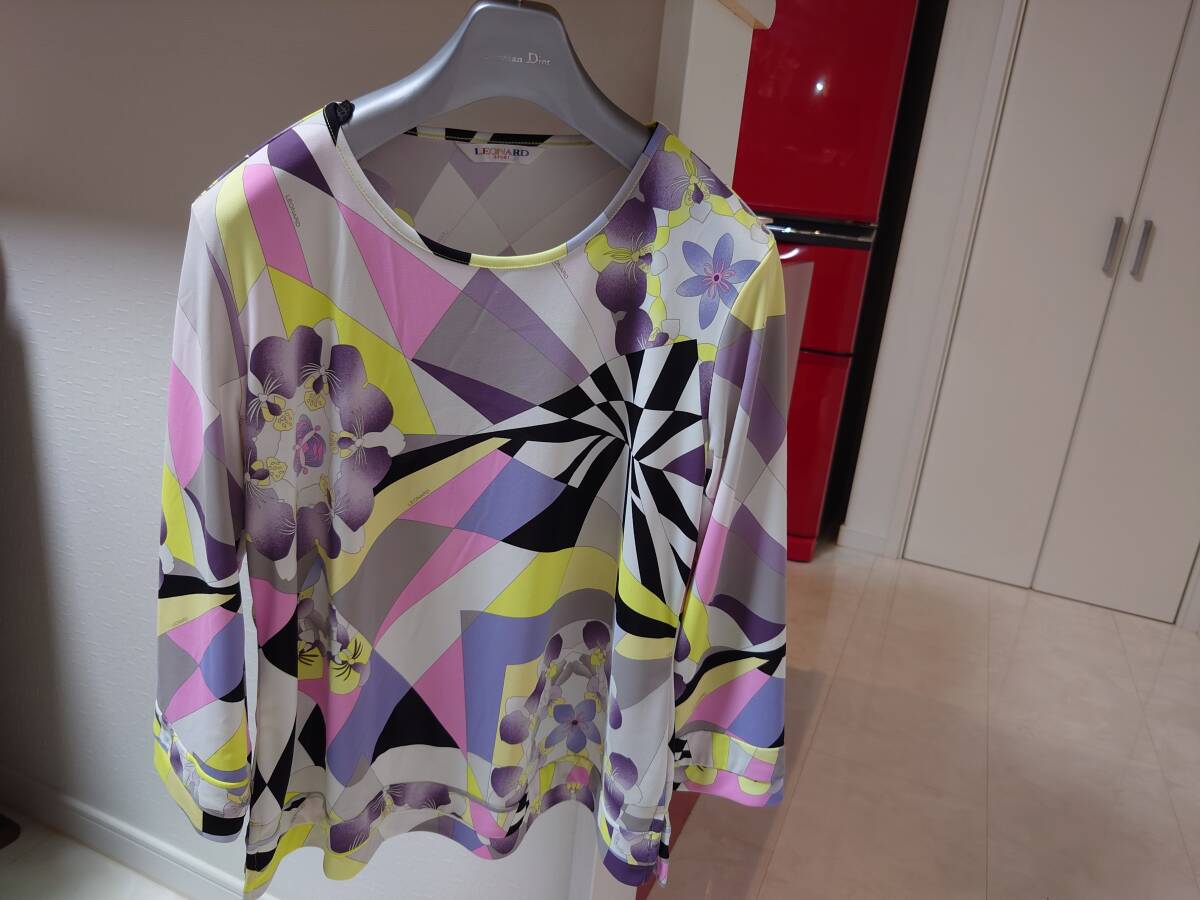 - レオナール シワになりにくい素材 7分袖 フラワープリント カットソー 44