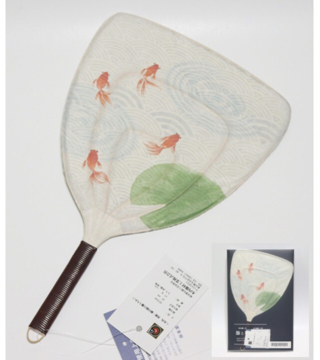 - 新品タグ付き【木内籐材工業株式会社】伝統工芸品 和紙(無形文化遺産細川紙)の籐うちわ 金魚 両面絵替わり v7273 プレゼントにも最適