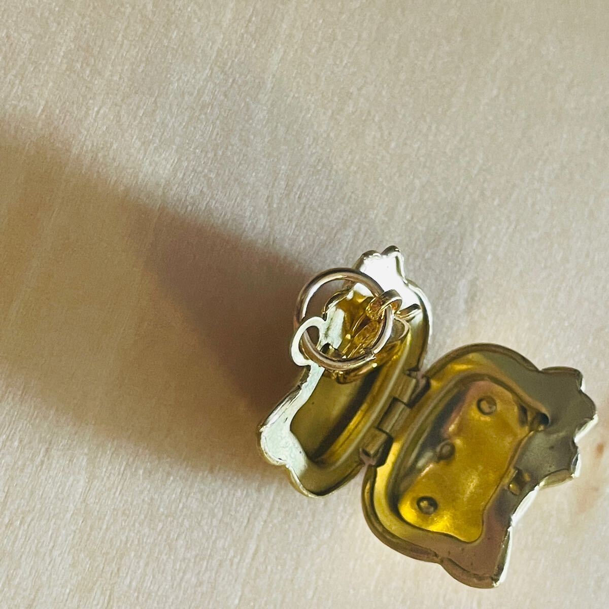 - 新品 当時物レトロ(6点セット) hello kitty ハローキティ チャーム 金色 付属品 背中が開き、中に練り香水、ピルなど入れる事が出来ます