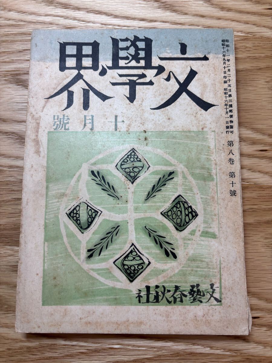 > 文學界 昭和16年10月 石一郎 立野信之 亀井勝一郎 上林暁 三好達治 阿部知二 式場隆三郎 芹沢光治良 中村光夫 舟橋聖一 森有正