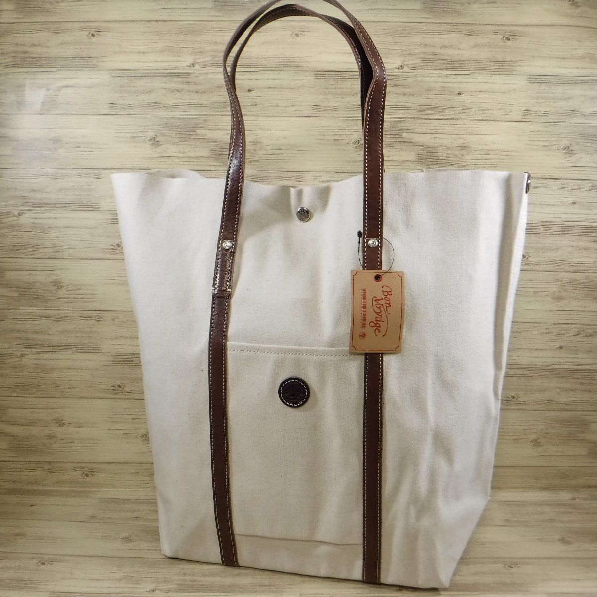 - BB485 木の庄帆布 定価1万6280円 新品 栃木レザー & 帆布 セルヴィッチ トートバッグ 大容量 B4 日本製 生成×チョコ メンズ レディース