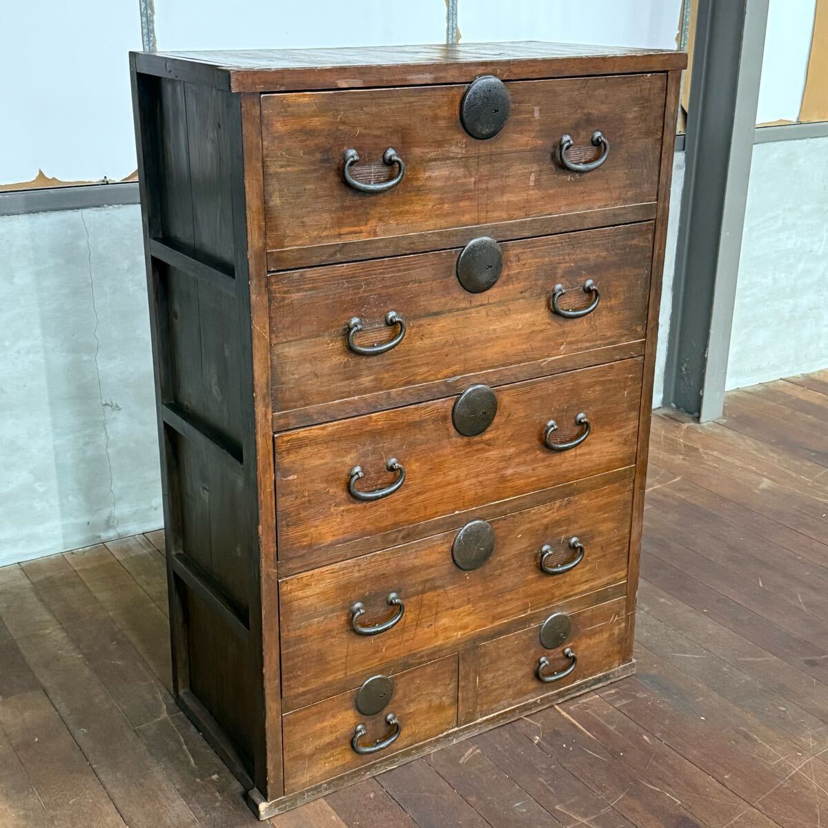 - H15K56 和製アンティーク 5段チェスト ハイチェスト 和家具 和箪笥 収納箪笥 収納家具 整理箪笥 時代箪笥 引き出し収納
