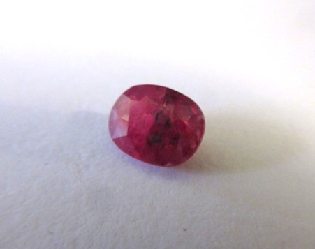 少しミルキーなピンクの中にブルーっぽい模様の入ったサファイアです。インクルージョンがありますが、透明感と柔らかなテリがあります。UVライトで赤く蛍光します。透明感のある部分とミルキーな部分が混じっています。NH