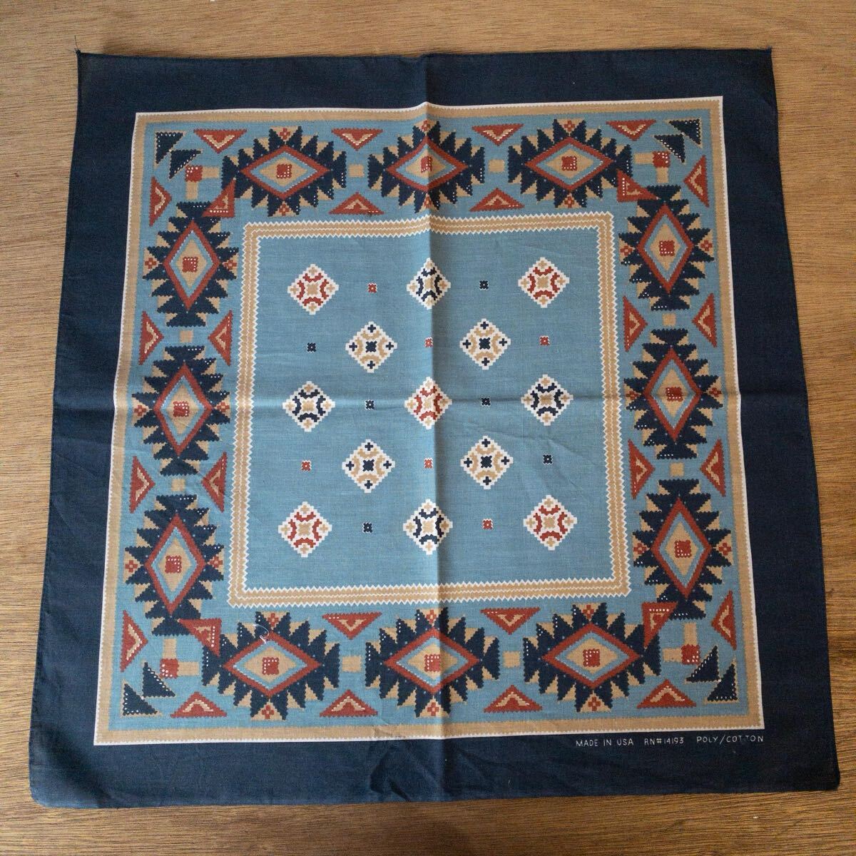 > 送料無料 Vintage バンダナ ネイティブ柄 ハンカチ アメリカ仕入れ 総柄 ネイビー コーデ アイテム 小物 雑貨 ヴィンテージ A1737