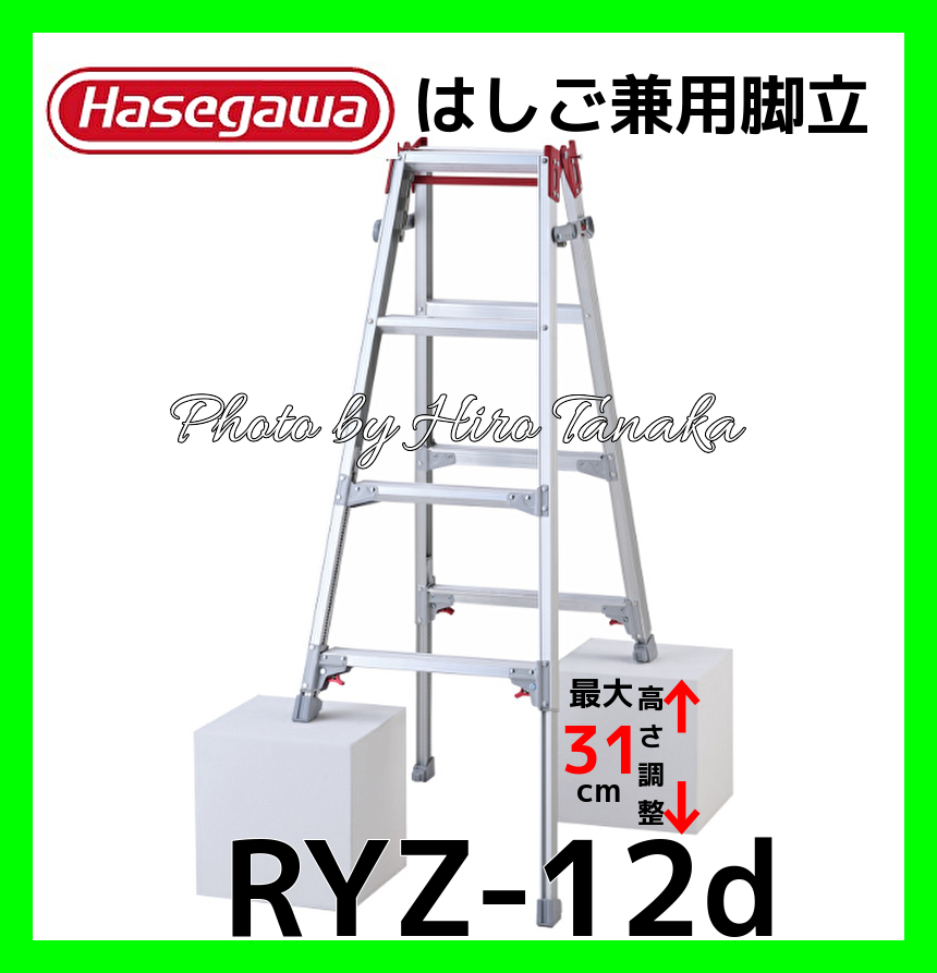 - 個人宅宛不可 ハセガワ アルミ はしご兼用脚立 RYZ-12d 脚部伸縮タイプ 4尺 正規取扱店出品 長谷川工業 幅広ステップ ワンタッチ開閉機能付