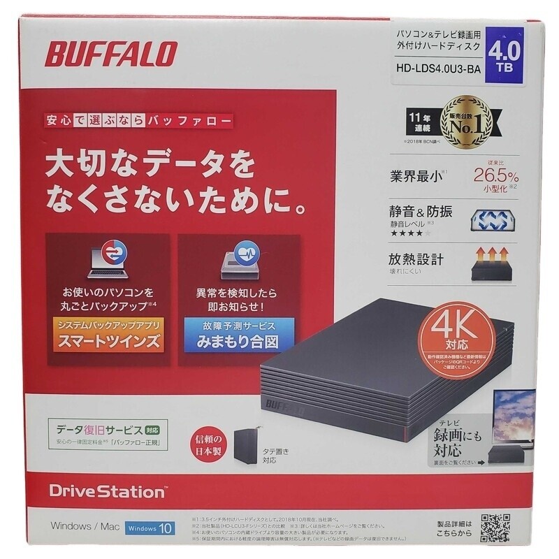 - BUFFALO バッファロー 外付け HDD 4TB HD-LDS4.0U3-BA ハードディスク ドライブ パソコン テレビ録画 【中古】 32506R104