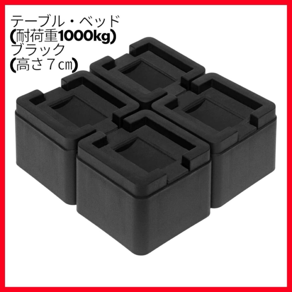 - テーブル・ベッドの高さ調節が簡単にできる ベッドの高さをあげる足 4個セット 高さを上げる 高さ (耐荷重1000kg) ブラック (高さ7㎝)