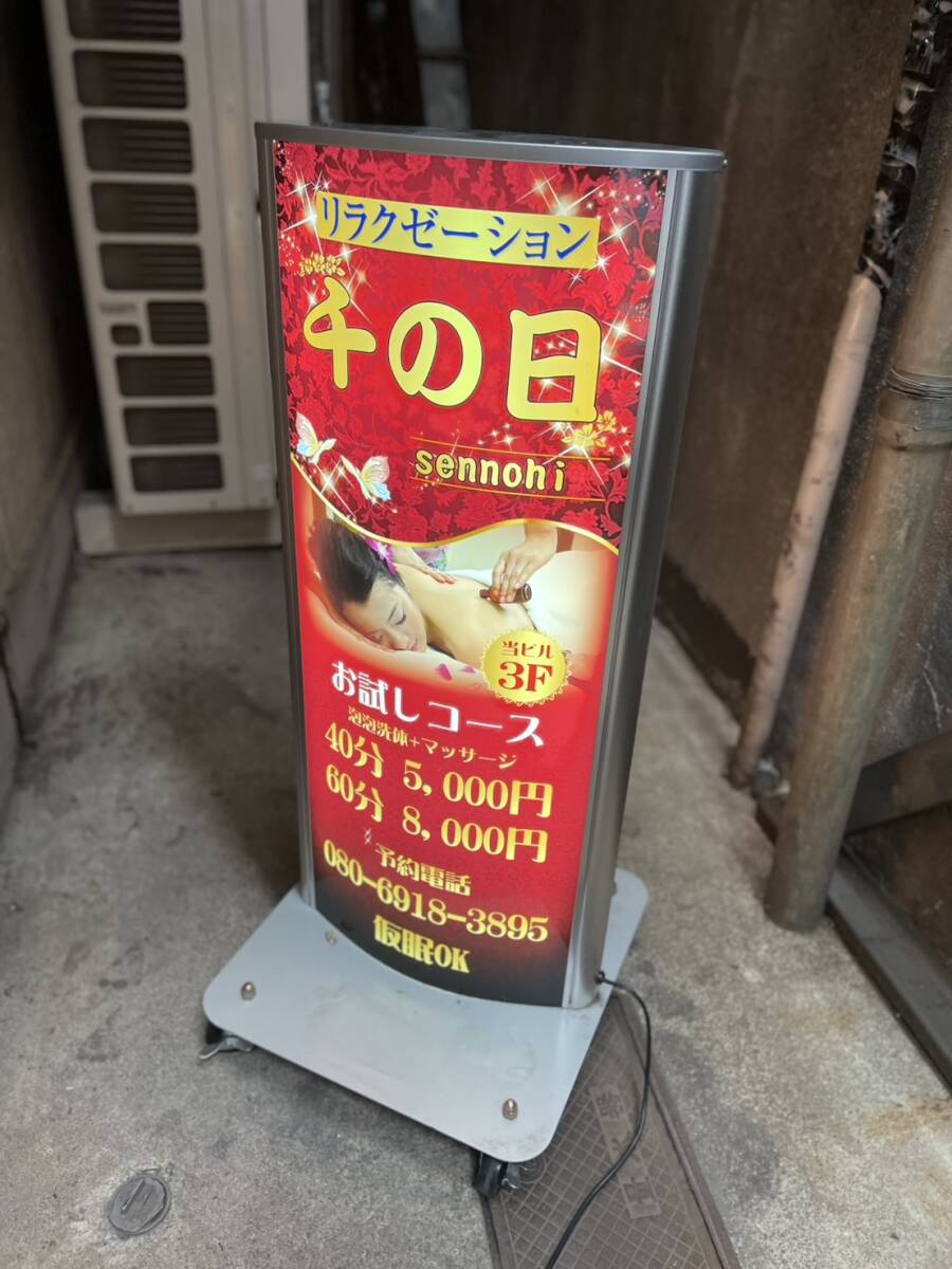 - ★中古メーカー不明/電飾スタンド看板/キャスター付/内照式看板/店舗用看板/両面/屋外用/美品