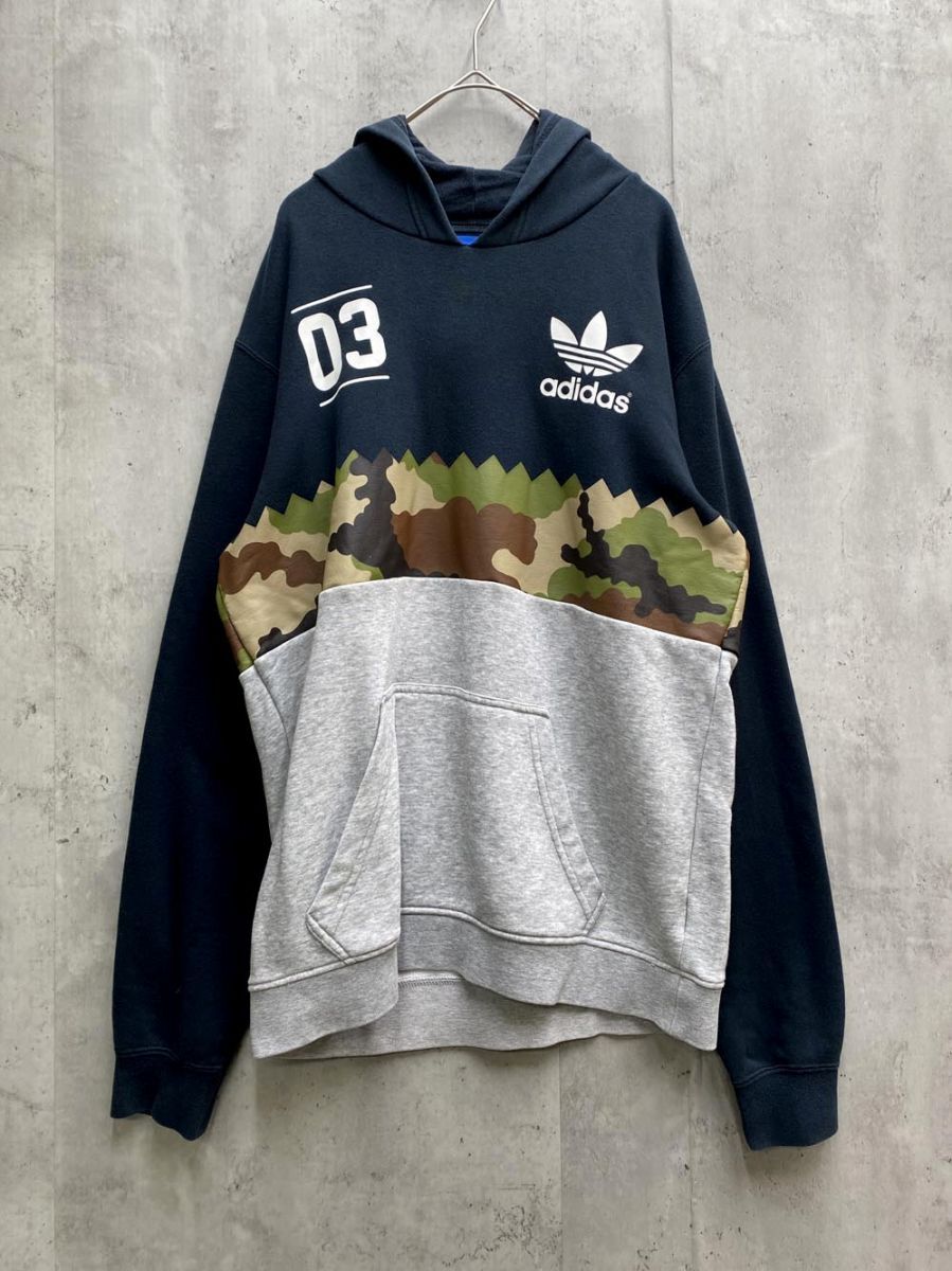 - adidas アディダス AH9742 裏毛 プルオーバー パーカー セレイテッド フーディー スウェット size095(173cm)/黒xカモ ◇■