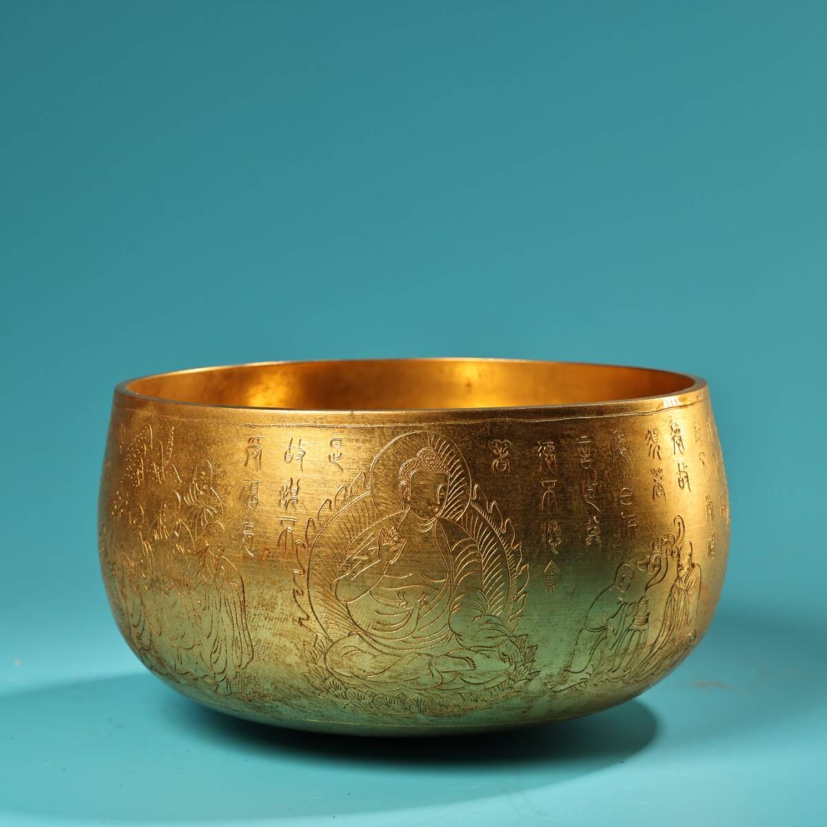 - 「東洋美術」人間国宝 中国骨董 銅製品【浮き彫り彫刻が施された金銅のボウル】 旧物 珍品 精美 收藏品 中国の古い美術