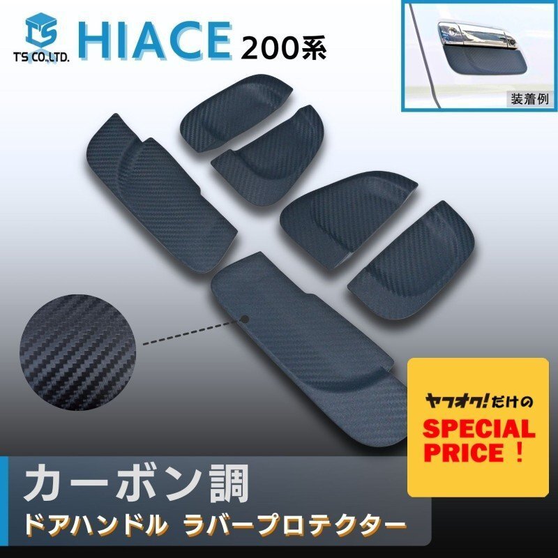 > SALE ハイエース200系 ドアハンドルラバープロテクター カーボン調 スマートエントリー対応 (1型 2型 3型 4型 5型 6型 7型)