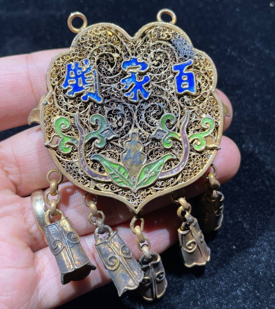 - 旧蔵 清 つねる絲銀塗金 燒藍鎖牌 極細工 中国古玩 骨董品 古美味 207