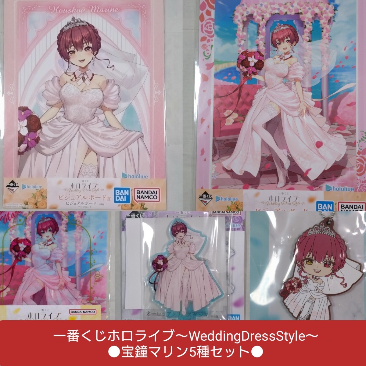 - 〔新品未開封〕【宝鐘マリン5種セット】一番くじ ホロライブ ~Wedding Dress Style~ ビジュアルボード アクスタ ラバー クリアファイル