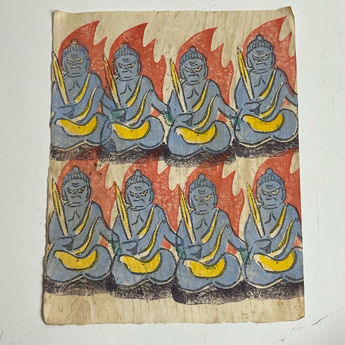 - 江戸初期 千体印仏 不動明王 木版画 仏教美術 32cm×23.5cm 1
