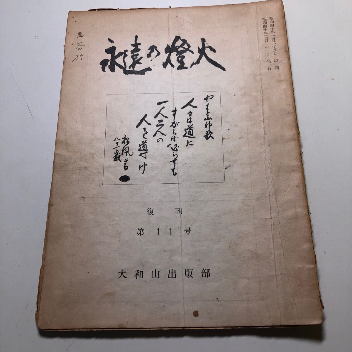 - M2b-287 永遠の燈火 大和山出版部 宗教法人 松緑神道大和山 復刊第11号 昭和40年2月発行 書き込み、破れあり