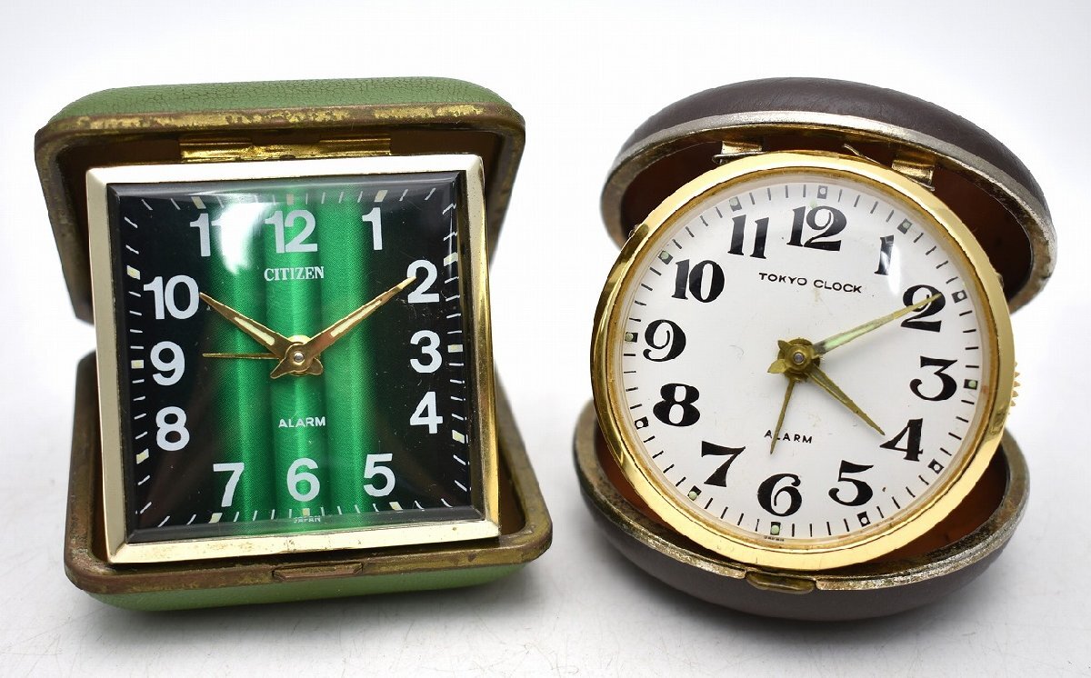 - 竜V967◆昭和レトロ ゼンマイ式 目覚まし 置時計 トラベルウォッチ 2点 CITIZEN ALARM シチズン アラーム TOKYO CLOCK ST301SA