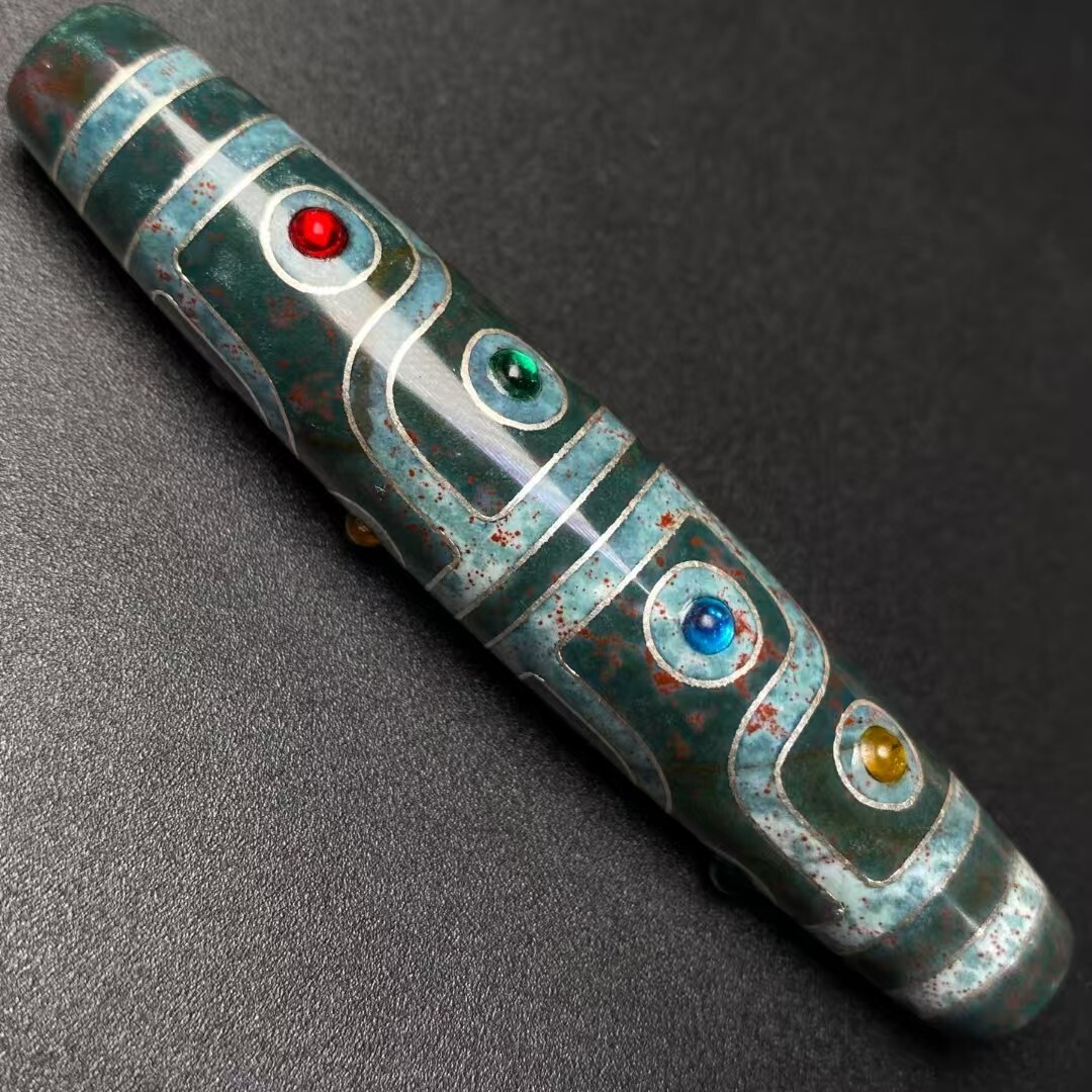 > 秘藏 清代 チベットの老天珠 高油老料 銀糸碧璽をちりばめた宝石【十二眼天珠 包漿渾厚 裝身具 骨董品 賞物 風水 開運 吊墜 挂件 玉佩7.13